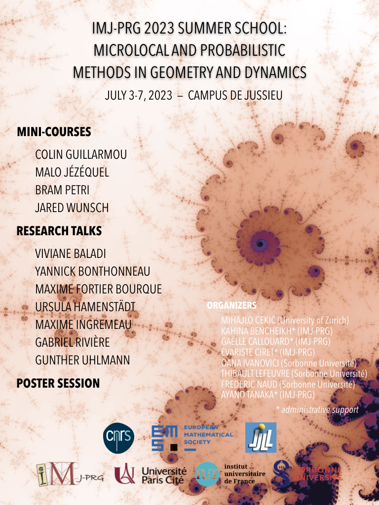 IMJ-PRG summer school : Microlocal and probabilistic methods in dynamics and geometry (JULY 3-7, 23, CAMPUS DE JUSSIEU)