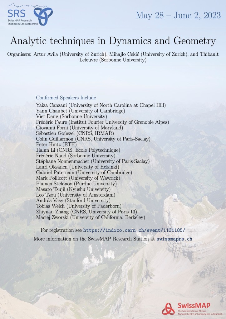 ANALYTIC TECHNIQUES IN DYNAMICS AND GEOMETRY (MAY 28 – JUNE 2, 23, LES DIABLERETS, SWITZERLAND)